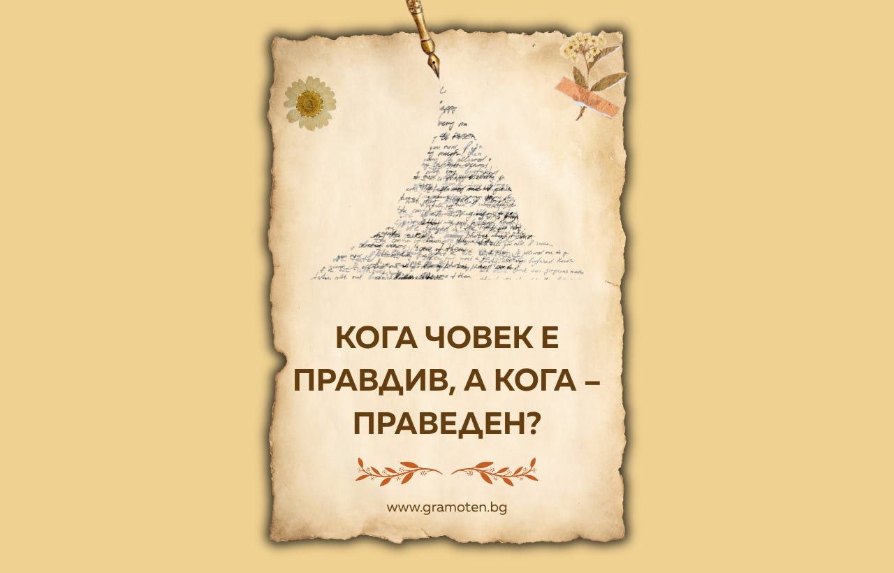 Нека поразсъждаваме върху тези две еднокоренни думи, които са синоними и пароними (макар последното да не е безспорно). Когато наричаме един човек правдив, то ние имаме предвид такъв човек, „който постъпва съобразно с правдата, с истината, справедливостта, морала; честен, нравствен, справедлив“ (Речник на българския език – http://ibl.bas.bg/rbe). Когато наричаме един човек праведен, говорим за човек, „който няма грехове; безгрешен, невинен“ (пак там).