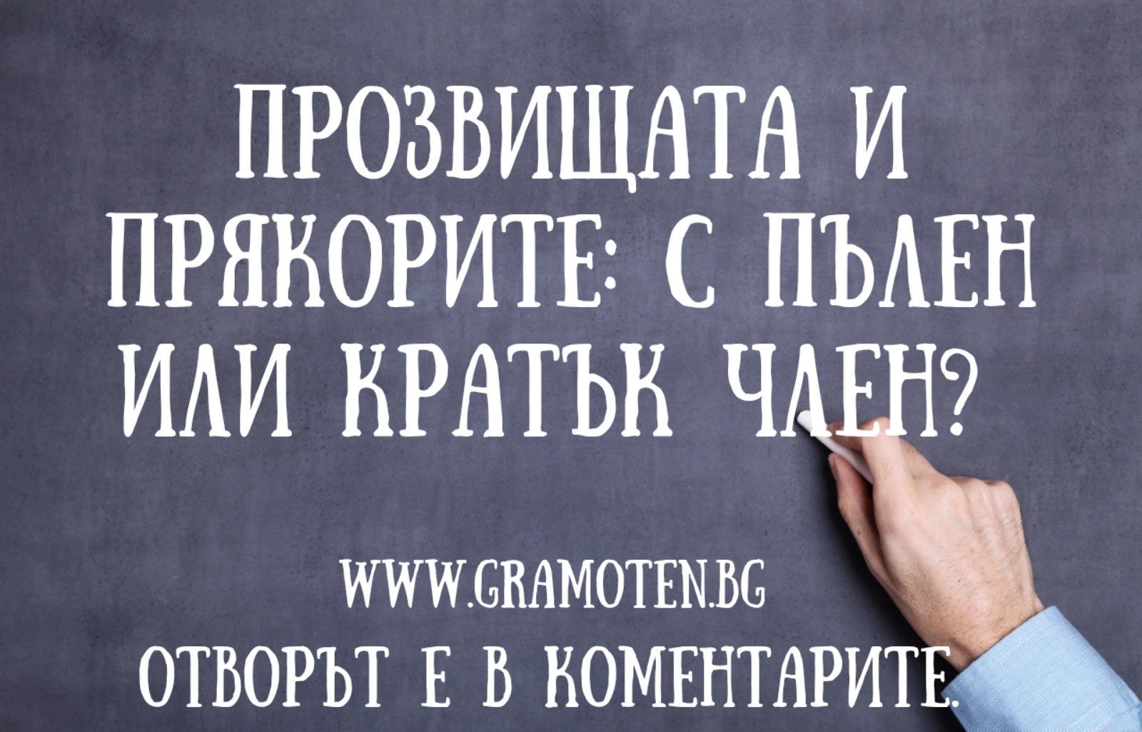 Сигурно ви се е случвало да се запитате как да напишете – с пълен или с кратък член – име от мъжки род, завършващо на съгласна, което е прозвище или прякор. Има ли грешка в изречения като Тук е роден Апостолът на свободата и Апостола на свободата организира освободителното движение? Отговорът е положителен и, може би изненадващо за някого, грешката е само в първото изречение. Защо? Тъй като използваното словосъчетание Апостола на свободата е прозвище, такива имена, както и прякорите, се употребяват с кратък член независимо от синтактичната им роля в изречението. Същото се отнася и за Дякона – другото прозвище на Васил Левски. Обръщам внимание, че ако вместо прозвището беше употребено например съществителното революционер, пак би имало грешка, но тя би била във второто изречение, където посоченото съществително, както в първото изречение, трябва да бъде с пълен член.