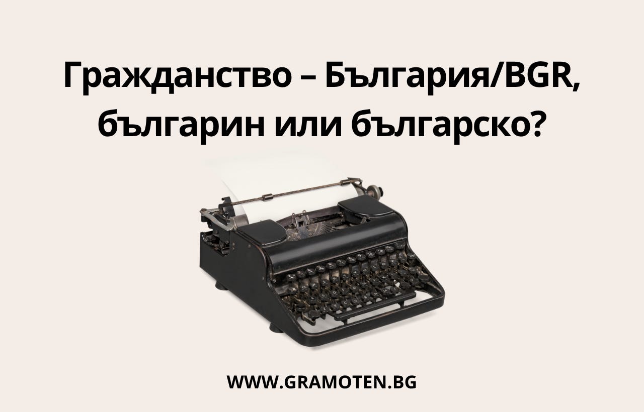 Начинът, по който е отразено гражданството в личните ни карти, подвежда някои и те, попълвайки други официални документи, без да се замислят, следват този „образец“ на изписване, т.е.: гражданство – България/BGR. Или допускат нова грешка: гражданство – българин.