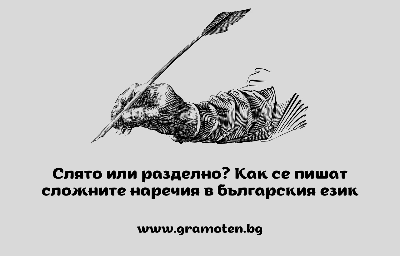 Общото правило гласи, че сложни наречия, образувани от предлог и наречие или предлог и съществително, се пишат слято („Официален правописен речник на българския език“, 2012).