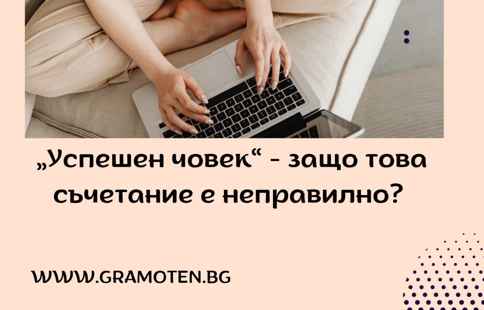 Аналогично и съчетанието успешен човек е неправилно, тъй като значението на прилагателното успешен не предполага то да пояснява одушевен предмет – срв. още съчетания със собствено име: *успешният Иван, *успешната Веселина.